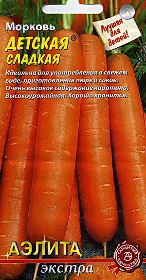 Компания «АЭЛИТА» является эксклюзивным продавцом сорта моркови «Детская» сладкая на рынке семян.