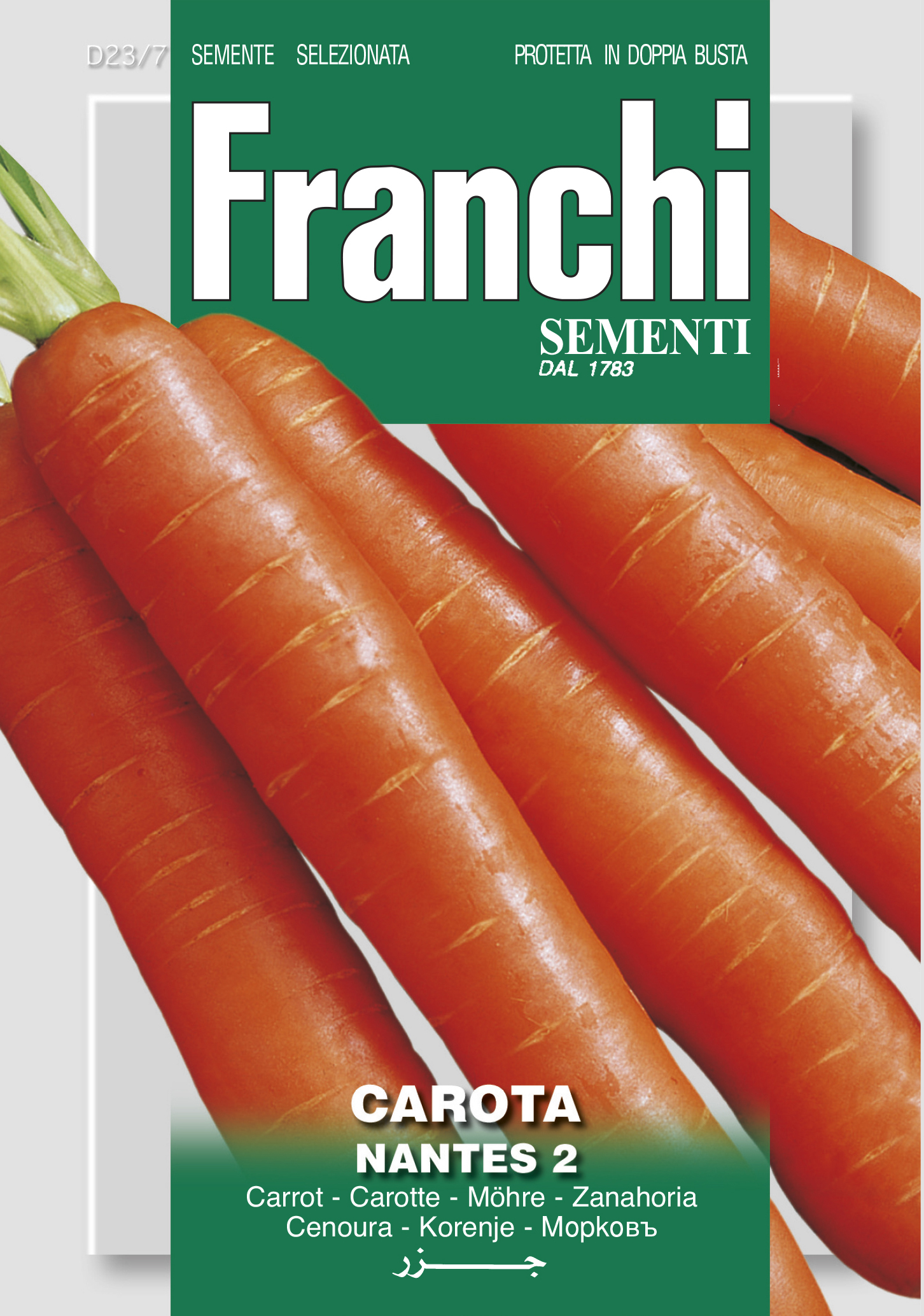 Морковь Нантес. Высокоурожайный среднеспелый сорт (100-110 дней). Корнеплод цилиндрический, тупоконечный, красно-оранжевой окраской. Длина 16-18 см. Масса 110-120 г. Сердцевина маленькая, оранжевого цвета. Мякоть нежная, сочная, великолепного вкуса. Рекомендуется для потребления в свежем виде, переработки и хранения.