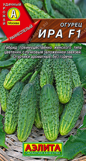 Раннеспелый пчелоопыляемый гибрид для открытого грунта. От всходов до первого сбора плодов 40-45 дней. Растения среднерослые. Количество завязей в узле 2-3. Зеленцы короткие, массой 80-150 г. Привлекательный внешний вид зеленцов удачно сочетается с превосходными вкусовыми качествами. Назначение универсальное. Гибрид характеризуется стабильной урожайностью, продолжительным плодоношением и высокой товарностью продукции. Урожайность – 8-12 кг/м2.