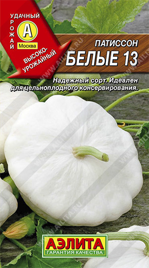 Среднеспелый сорт, период от полных всходов до плодоношения 55-67 дней. Растение кустовое. Плод дисковидный с зубчатыми краями, массой 300-500 г. Плоды очень выровненные, гладкие, белые, с плотной мякотью белого цвета. Прекрасно подходят для всех видов кулинарной переработки, цельноплодного консервирования, прекрасно сохраняют свои качества в замороженном виде. Сорт высокоурожайный, устойчив к болезням.