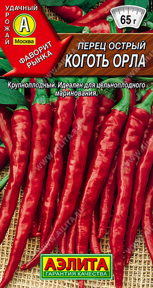 Крупноплодный сорт для выращивания в открытом грунте и под пленочными укрытиями. Cреднеспелый, от всходов до технической спелости перцев 125-135 дней. Растения полу раскидистые, высотой 100-120 см. Плоды массой 55-65 г, с сильным перечным ароматом и острым вкусом. Толщина стенок 3 мм. Используется в свежем, сушеном и молотом виде – как приправа для супов, соусов, мясных блюд и консервов. Урожайность 4-4,5 кг/м 2 .